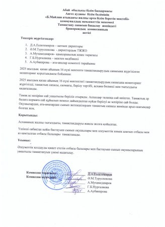 » Тамақтану сапасын бақылау жөніндегі бракераждық комиссияның актсі